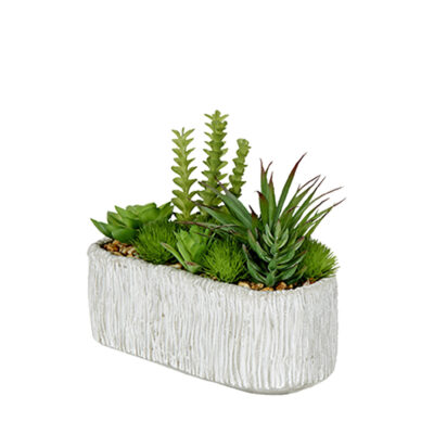 Assorted Succulents in Oblong Cement Planter – 203141