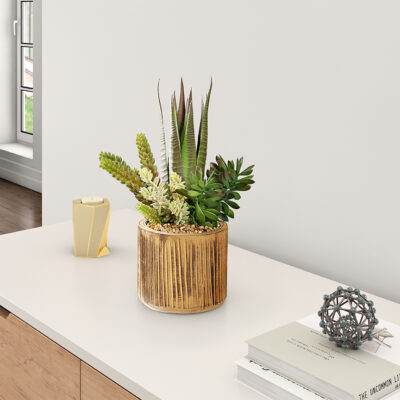 Sansevieria, Succulents & Ghostwood in Asher Planter – 229048