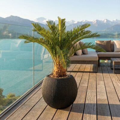 Sago Cycas in Cement Finish Orbis Planter – 1027-3143