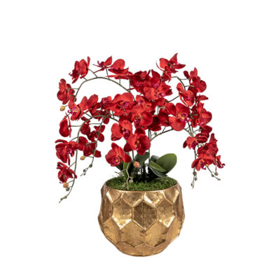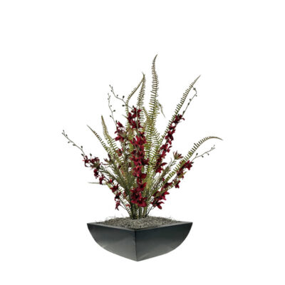 Red Phael Orchids, Ferns & Dragonwood in Large Ancient Grove Pot – 260014