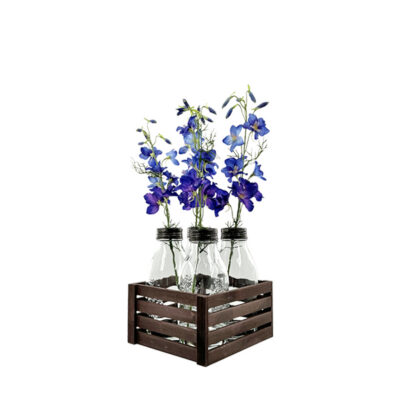 Blue Delphinium Orchids in Wood Crate w/4 Glass Bottles – 7264029