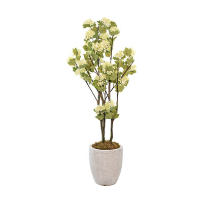 Cream/Green Snowball Branch in Medium Gold Flintstone Planter – 189003