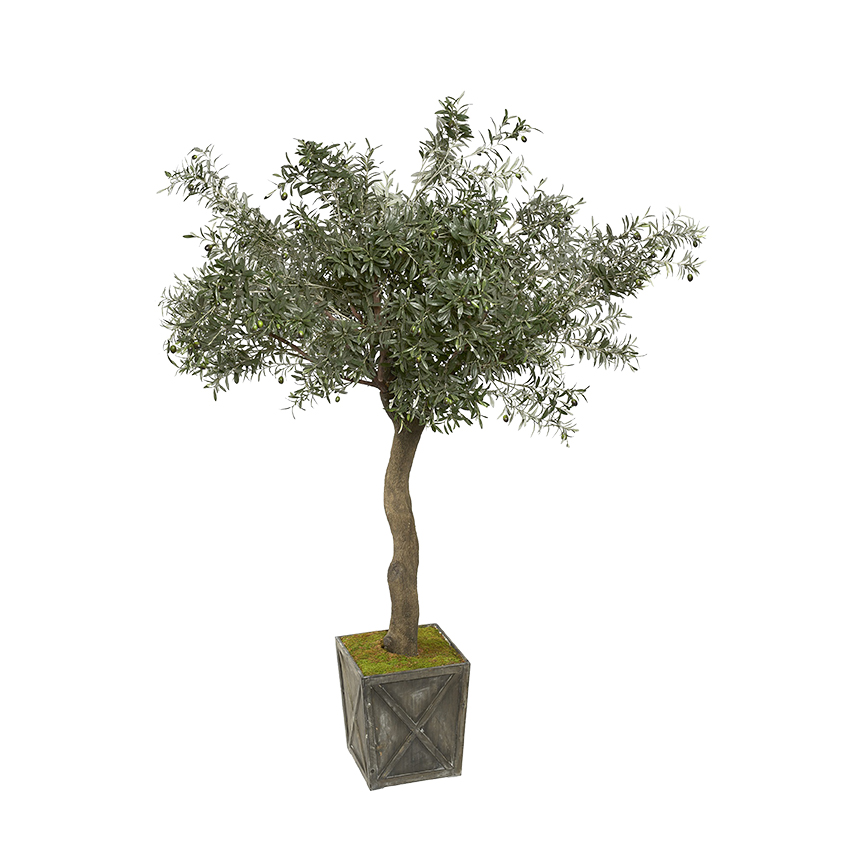 Sculptured Olive Tree in Rustic Wooden Planter 7′ – 317119