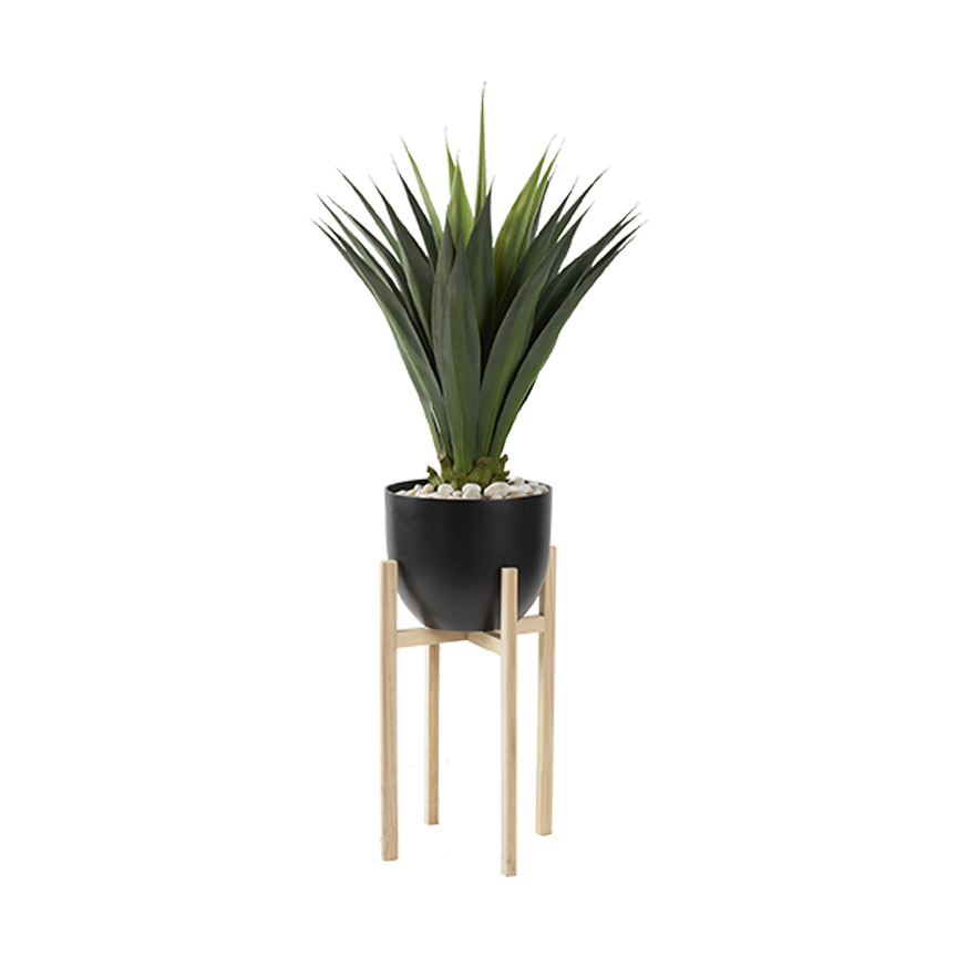 Jumbo Agave in Small Black Catalina Planter with Wood Stand
