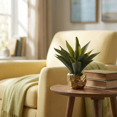 Flocked Aloe in Small Gold Flintstone Planter (Set of 3) – 189008