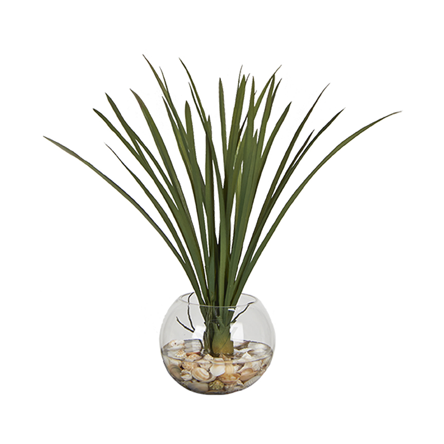 Horsetail Reed and Areca Grass in Glass Bowl – 246028