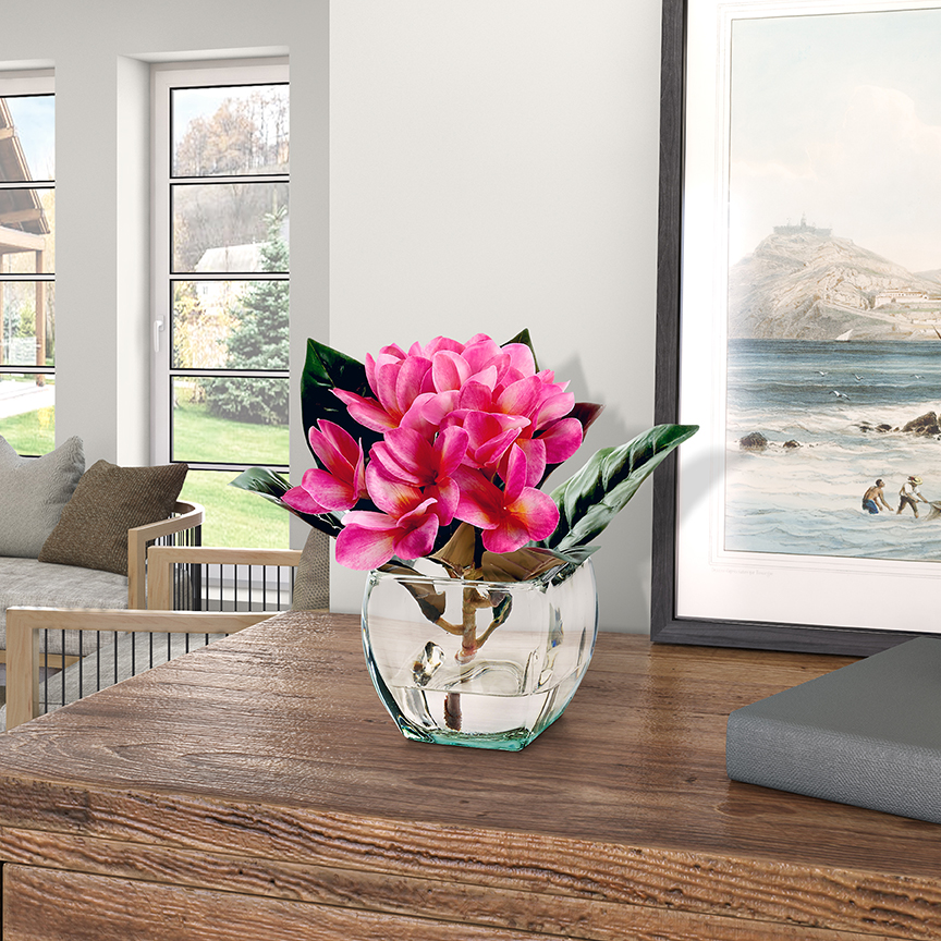 Pink Frangipani in Bevel Vase – 243003