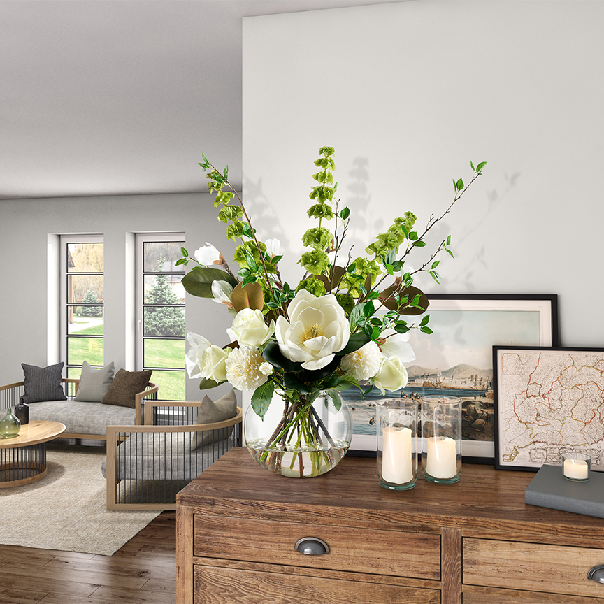 Natural Plus Magnolias & Eucalyptus in Fleur Vase – 229028