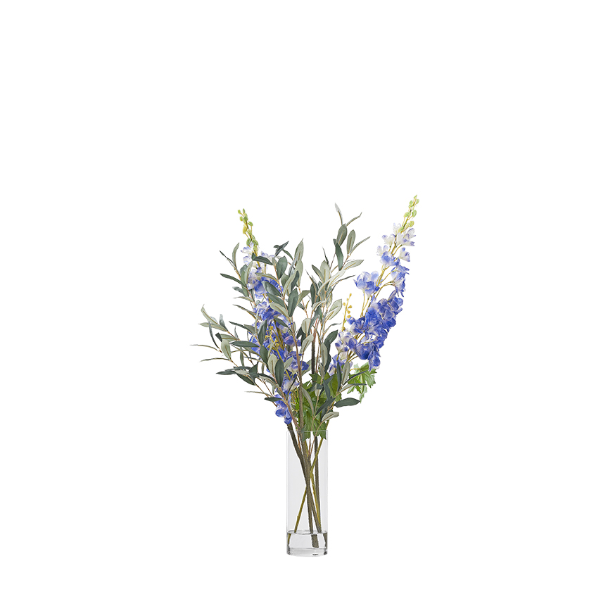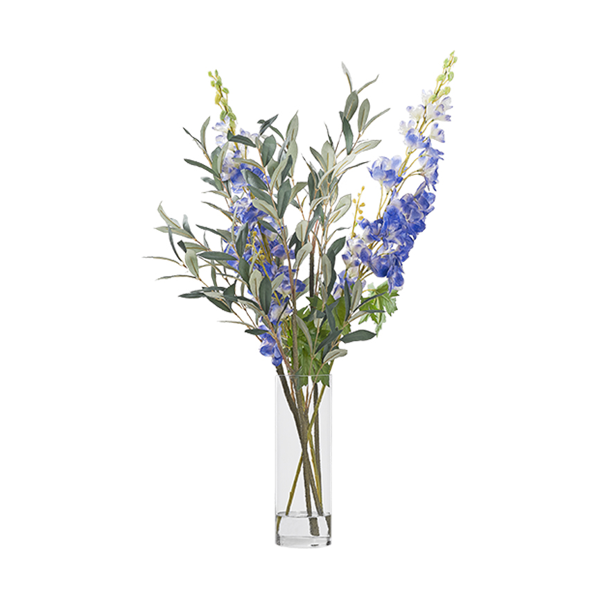 Cream Delphiniums & Blue Eucalyptus in Socle Vase – 254025
