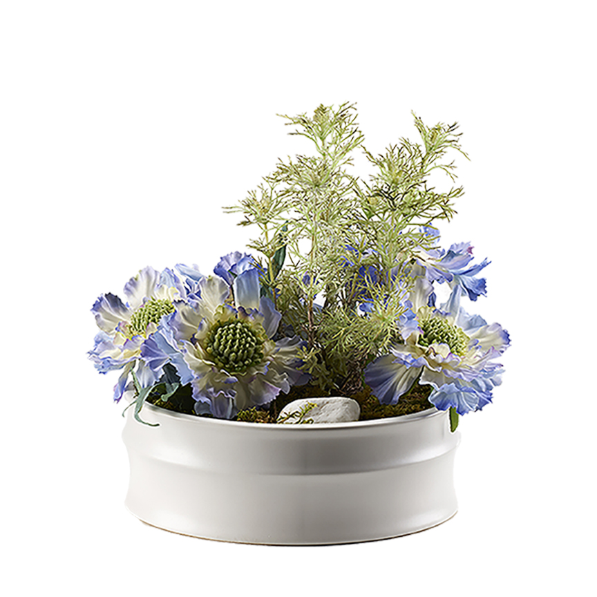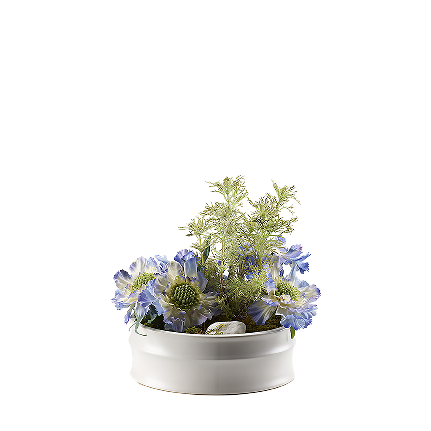 Blue Caspia Stems with Greenery in Dollop Planter – 7224081