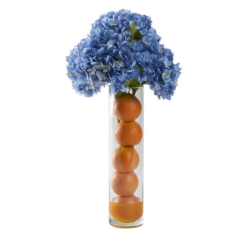 / Blue Hydrangeas with Oranges in Cillian Vase – 212216