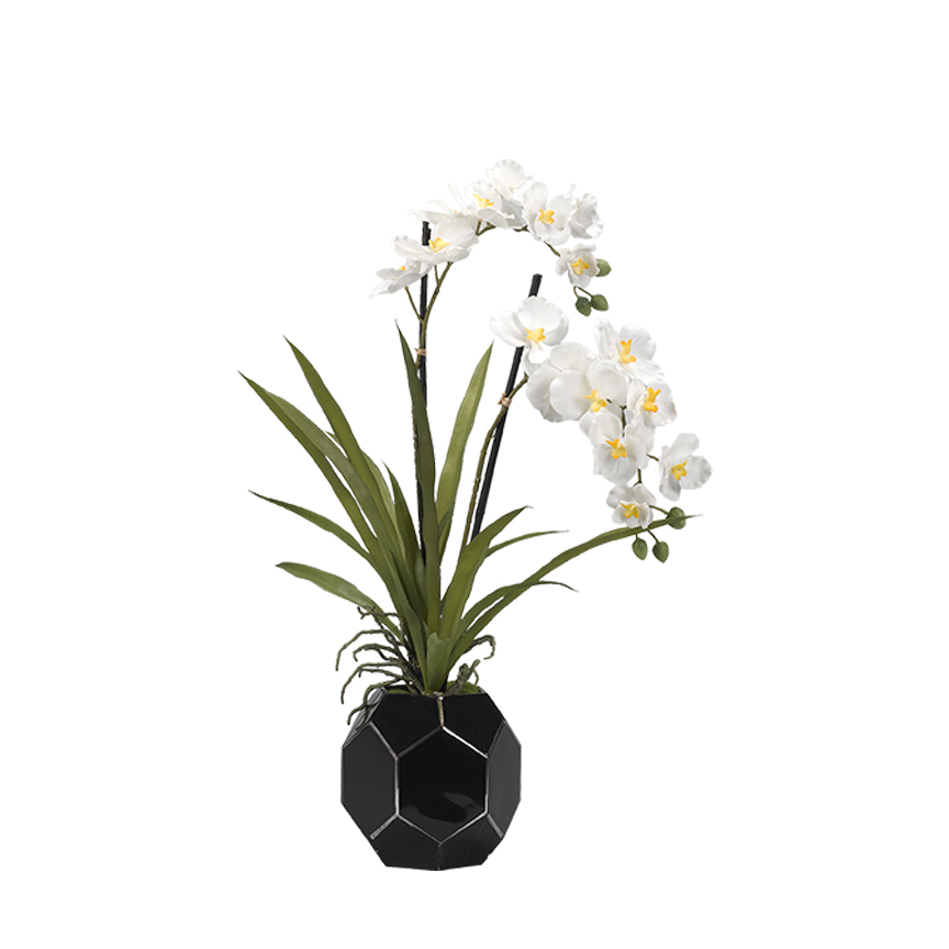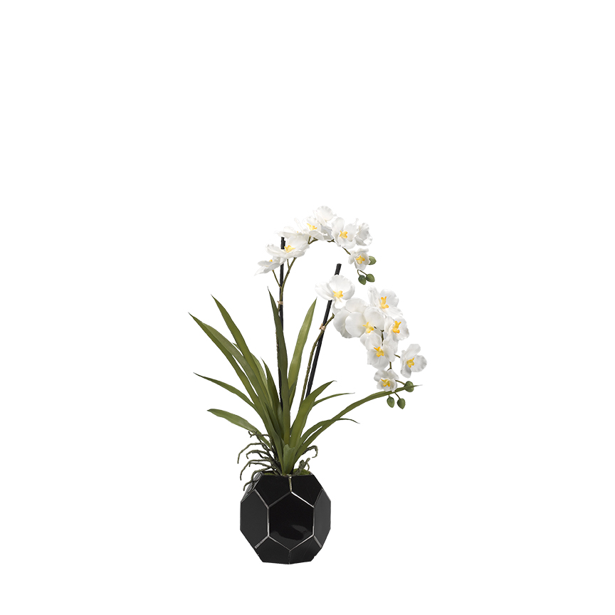 Cream Vanda Orchids with Heather Fern in Large Cora Bowl – 219016