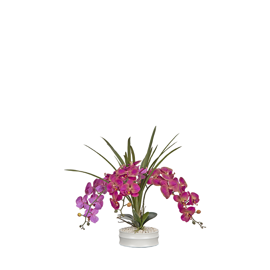 Lavender Phael Orchids in Matte White Bowl – 254033