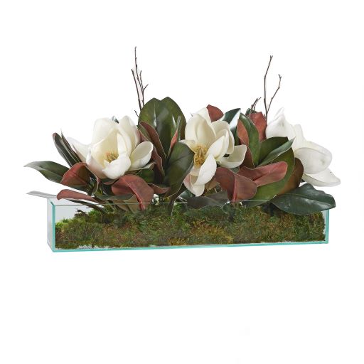 / Magnolias and Birch Tops in Medium Aquaria Vase – 231011