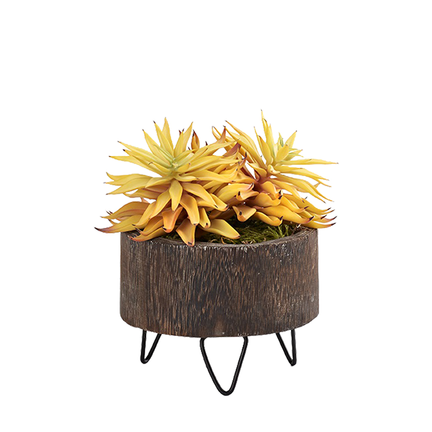 Pink Stem Succulents in Wood Bowl with Metal Legs – 212149