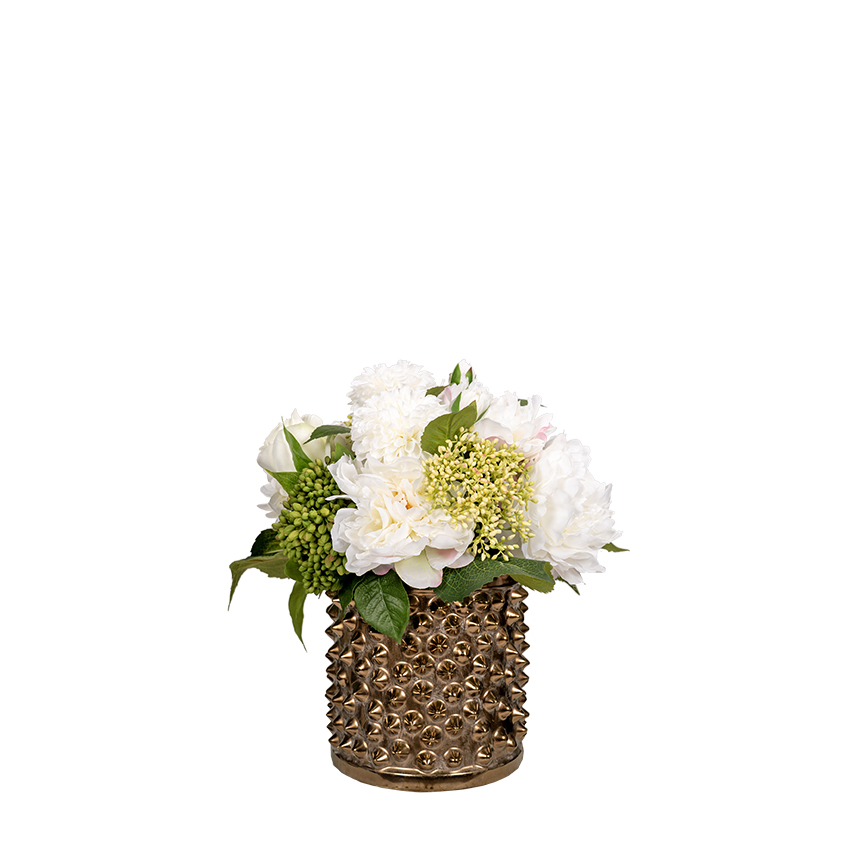 Peonies, Hydrangeas, Dahlias & Roses in Gold Spiked Vase