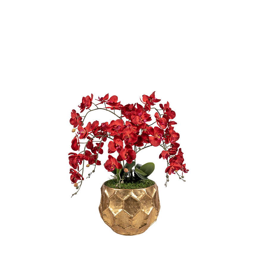 Cream/Red Cymbidium Orchids in Hurricane Vase – 224024