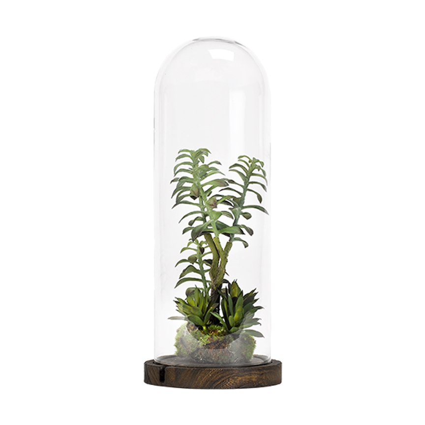 Flocked Agave, Echeveria, Frosted Pink Echeveria & Pineapple Succulent in Terrarium Bowl – 212060